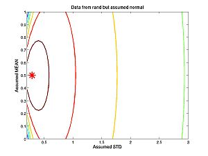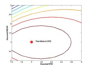 true_mean = 1; true_std = 2; % The std must be positive assumed_means = 0:.2:3; assumed_stds = 1.6:.2:3; % The std must be positive n = 10000;