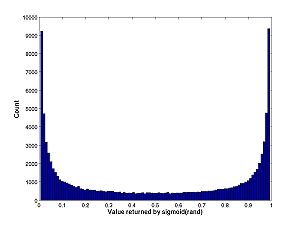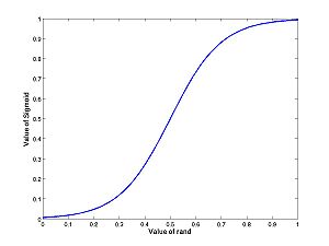 - Homework B.5 (from Lab B): Consider the uniform random variable A = rand and the random variable F = sigmoid(A,k,h). Where does the PDF of F have peaks; where does it have troughs. Hint: For different k,h, be sure to plot both the function over the range of rand (0 to 1) and the histogram.